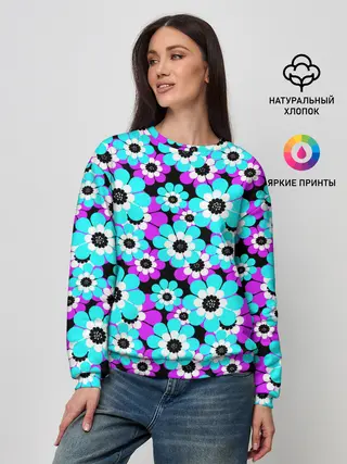 Женский свитшот / Яркие бирюзовые цветы