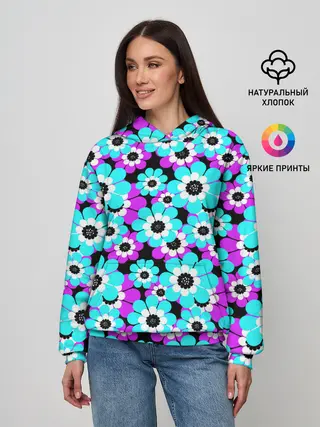 Женское худи / Яркие бирюзовые цветы