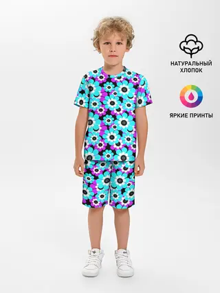 Детская пижама с шортами / Яркие бирюзовые цветы