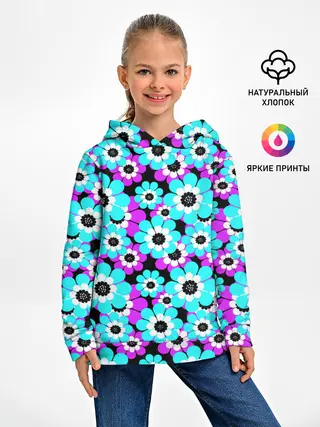 Детское худи / Яркие бирюзовые цветы