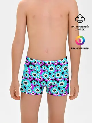 Трусы для мальчиков / Яркие бирюзовые цветы