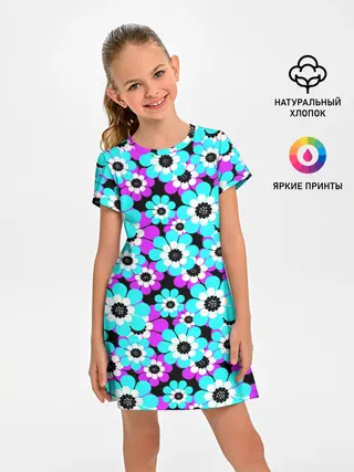 Детское платье / Яркие бирюзовые цветы