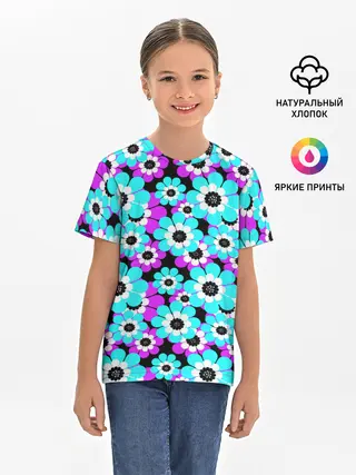 Детская базовая футболка / Яркие бирюзовые цветы