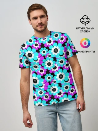 Мужская базовая футболка / Яркие бирюзовые цветы