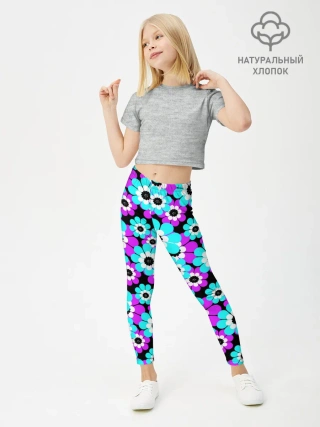 Леггинсы для девочки / Яркие бирюзовые цветы
