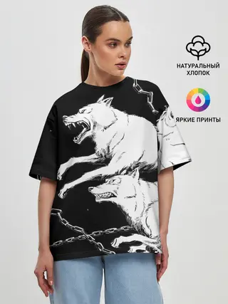 Женская футболка оверсайз / Белые волки