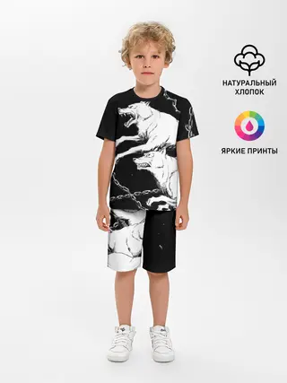 Детская пижама с шортами / Белые волки