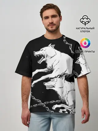 Мужская футболка оверсайз / Белые волки