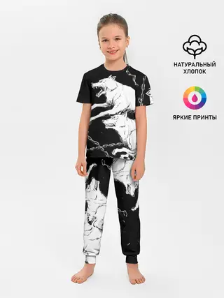 Детская пижама с брюками / Белые волки