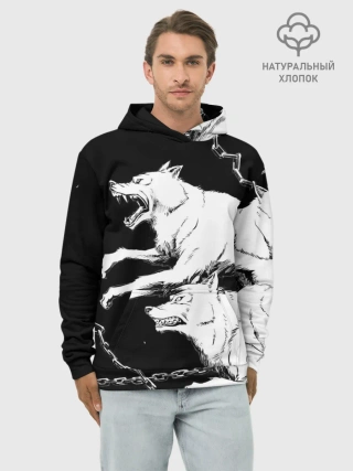 Худи мужской база хлопок / Белые волки