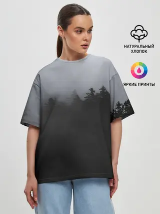 Женская футболка оверсайз / Лес в дыму