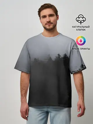 Мужская футболка оверсайз / Лес в дыму