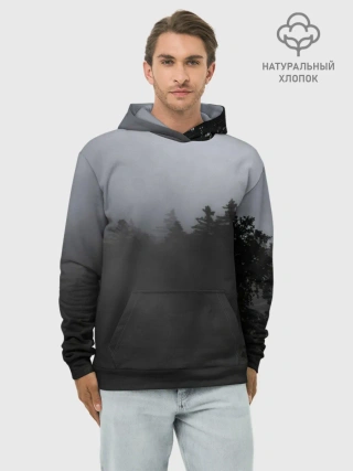 Худи мужской база хлопок / Лес в дыму