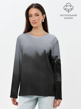 Лонгслив женский. Хлопок / Лес в дыму