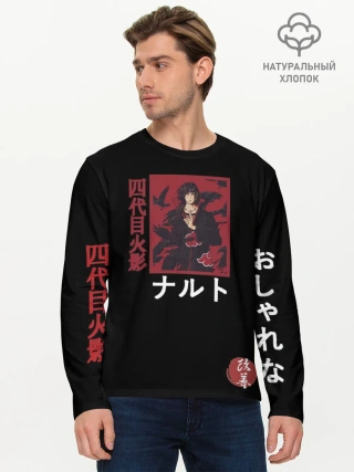 Мужской лонгслив базовый / Хитачи иероглицы черные
