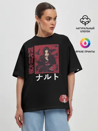 Женская футболка оверсайз / Хитачи иероглицы черные