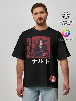 Мужская футболка оверсайз / Хитачи иероглицы черные
