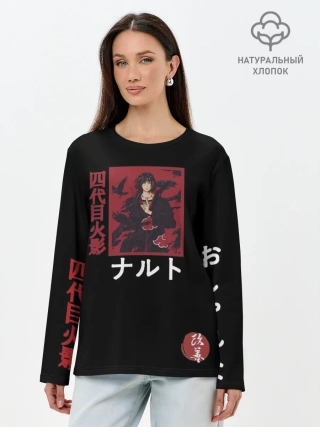 Лонгслив женский. Хлопок / Хитачи иероглицы черные