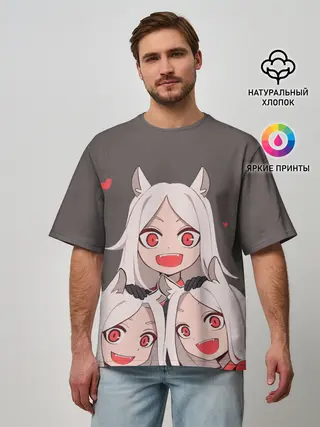 Мужская футболка оверсайз / Cerberus с сердечками Helltaker