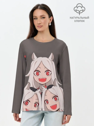 Лонгслив женский. Хлопок / Cerberus с сердечками Helltaker
