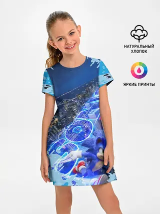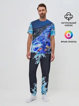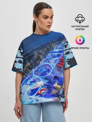 Женская базовая футболка / SONIC BLUE PATTERN | СИНИЙ ЁЖ