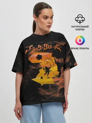 Женская футболка оверсайз / Чёрный клевер удар Аста мечом
