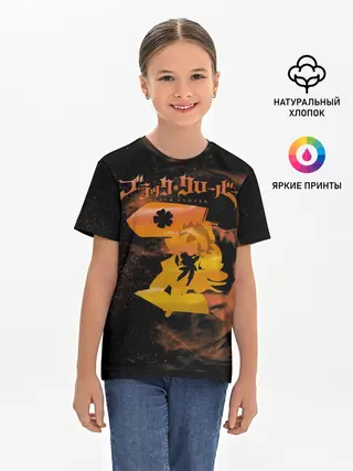 Детская базовая футболка / Чёрный клевер удар Аста мечом