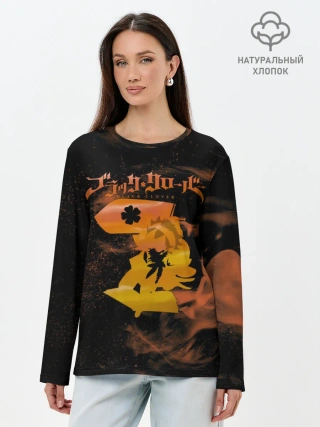 Лонгслив женский. Хлопок / Чёрный клевер удар Аста мечом