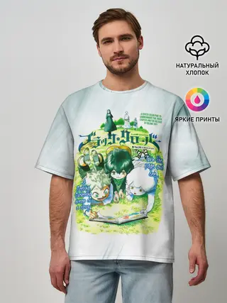 Мужская футболка оверсайз / Аста и Юно малыши Чёрный клевер