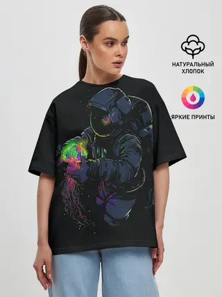 Женская футболка оверсайз / Медуза и космонавт