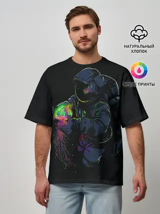 Мужская футболка оверсайз / Медуза и космонавт
