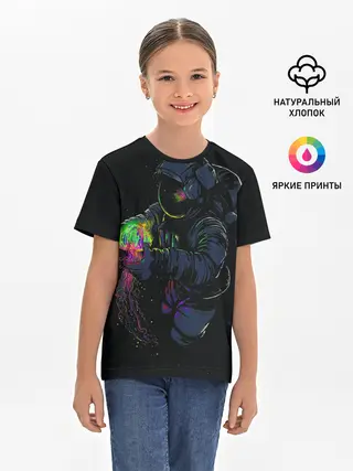 Детская базовая футболка / Медуза и космонавт