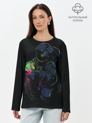 Лонгслив женский. Хлопок / Медуза и космонавт