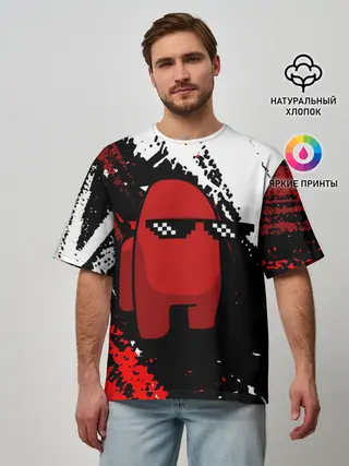 Мужская футболка оверсайз / Among Us Sus Life Imposter.