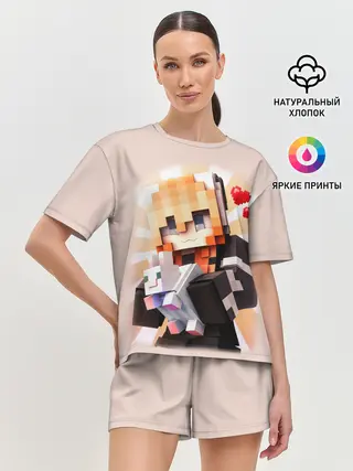 Женская базовая футболка / Корабль и замок в манкрафт.