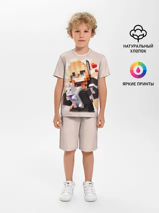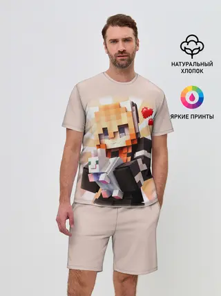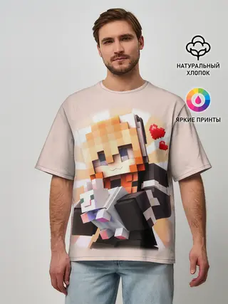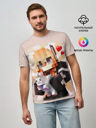 Женская базовая футболка / Майнкрафт на коне в березовом лесу