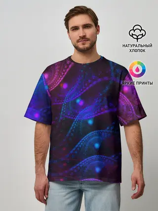 Мужская футболка оверсайз / NEON FRACTAL