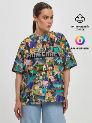 Женская футболка оверсайз / MINECRAFT ПЕРСОНАЖИ