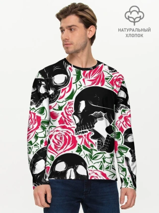 Мужской лонгслив базовый / Череп, розы, цветы, зубы