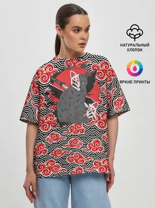 Женская футболка оверсайз / Бакэнэко