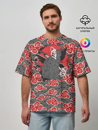 Мужская футболка оверсайз / Бакэнэко