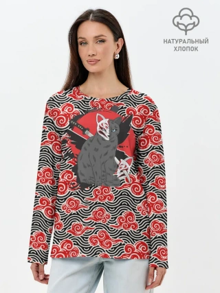 Лонгслив женский. Хлопок / Бакэнэко