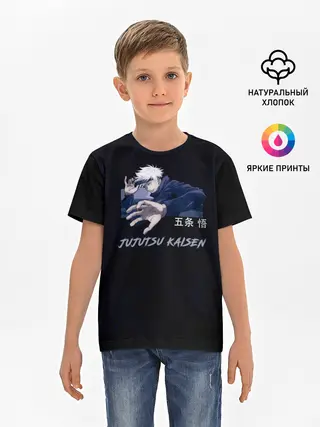 Детская базовая футболка / Сатору Годжо без повязки Магическая битва