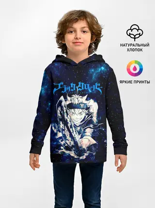 Худи мужской база хлопок / Чёрный клевер Аста в космосе