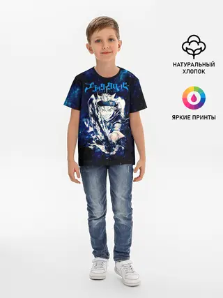 Детская базовая футболка / Чёрный клевер Аста в космосе