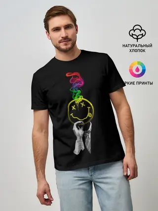 Отличная футбллка. Принт яркий. качественно материала сразу видно. я довольна