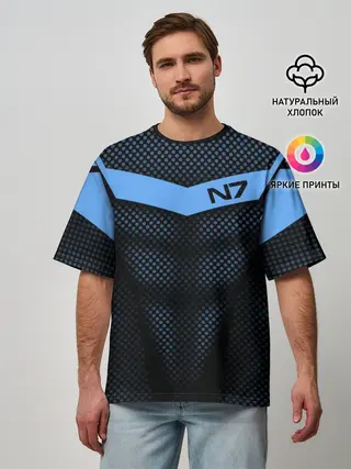 Мужская футболка оверсайз / Mass Effect N7