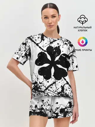 Женская пижама с шортами / черный клевер,