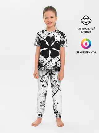 Детская пижама с брюками / черный клевер,