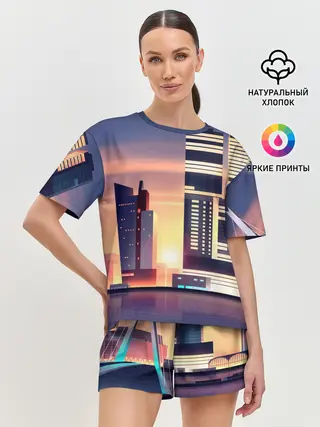 Женская пижама с шортами / Ночной Город